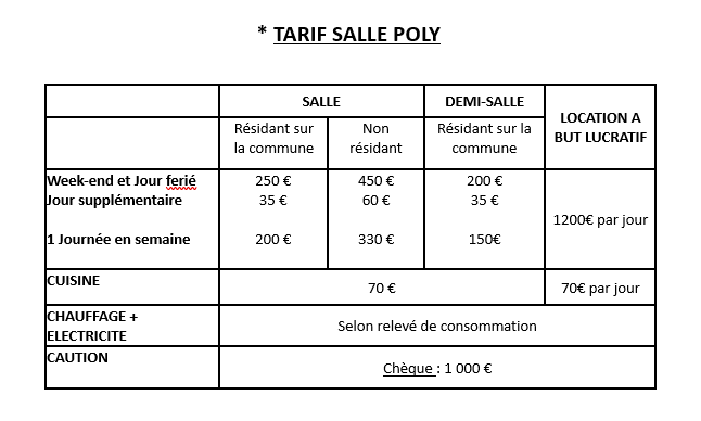 Pour toutes locations, il est obligatoire d'appeler la mairie afin de réserver et de retirer les clés.